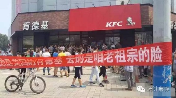 據(jù)媒體報(bào)道,包括湖南長(zhǎng)沙、浙江杭州、江蘇揚(yáng)州、連云港、山東臨沂等,全國(guó)至少11個(gè)市縣發(fā)生了抵制肯德基事件。在河北樂(lè)亭,有一伙兒人自發(fā)的在肯德基門前拉橫幅,呼吁民眾抵制肯德基。期間這伙“愛(ài)國(guó)人士”勸離了數(shù)位打算到肯德基消費(fèi)的市民,甚至還糾集人手打傷了質(zhì)疑他們行為的趙某。
