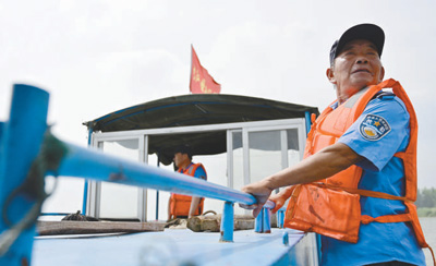 江西湖口縣巡護(hù)隊(duì)隊(duì)員伍后春出港巡查。新華社記者 彭昭之?dāng)z