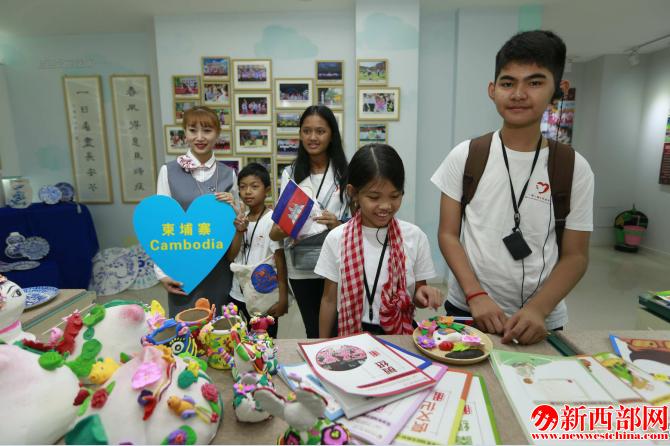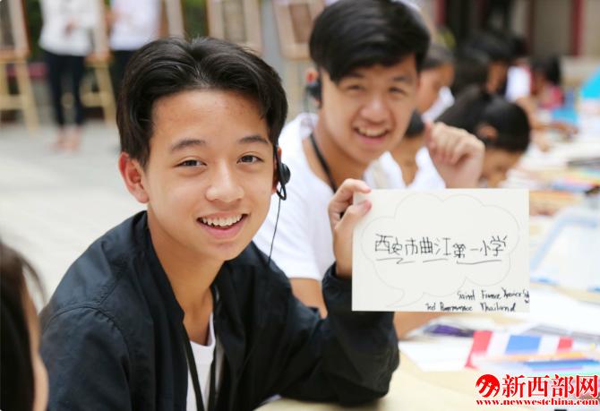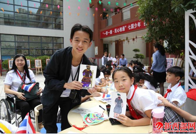 校園活動中,中外少年一起學(xué)習(xí)交流、現(xiàn)場作畫,共同繪制出了孩子們眼中的“大美西安”。
