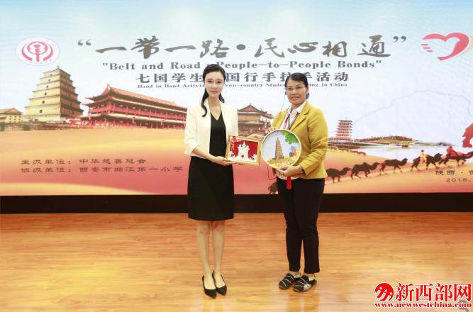 新西部網(wǎng)西安5月15電(記者王順利)“‘一帶一路·民心相通’七國少年中國行手拉手活動”今天在西安市曲江第一小學(xué)隆重舉行。來自柬埔寨、緬甸、老撾、蒙古、越南、泰國、中國的“一帶一路”沿線七國代表團領(lǐng)導(dǎo)、嘉賓、學(xué)生代表和陜西省人大常委會副主任郭大為、陜西省慈善協(xié)會會長劉維隆、陜西省人大常委會民族宗教僑務(wù)外事工作委員會主任趙政才、中華慈善總會新聞界志愿者慈善促進工作委員會執(zhí)行會長兼秘書長徐鐿軒、陜西省慈善協(xié)會副會長趙浩義、七國代表團執(zhí)行團長、“知心姐姐”盧勤、中華慈善總會小彩象夢想基金主任徐天啟、西安市曲江新區(qū)管委會黨工委委員、西安演藝集團董事長寇雅玲、西安市曲江第一小學(xué)校長陳娟以及媒體朋友共計百余人出席活動。