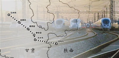 寶蘭高鐵自陜西省寶雞市引出,經(jīng)甘肅省天水市、秦安縣、通渭縣、定西市至蘭州市,設(shè)寶雞南、蘭州西等8個車站,全長401公里,運營時速250公里。