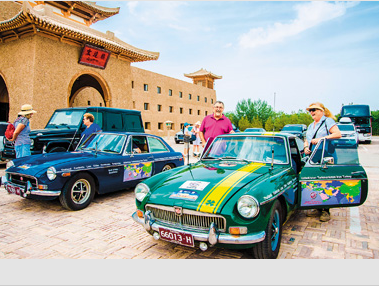 5月21日,一個(gè)來自澳大利亞由8輛老爺車組成的自駕車隊(duì)來到絲綢之路國(guó)際旅游名城甘肅敦煌。據(jù)悉,他們以這種新鮮獨(dú)特的方式體驗(yàn)絲綢之路悠久的古代文明,同時(shí)領(lǐng)略新時(shí)期絲綢之路上名城重鎮(zhèn)的飛速發(fā)展和日新月異的變化。圖為車隊(duì)成員在敦煌山莊準(zhǔn)備出發(fā)前往莫高窟。