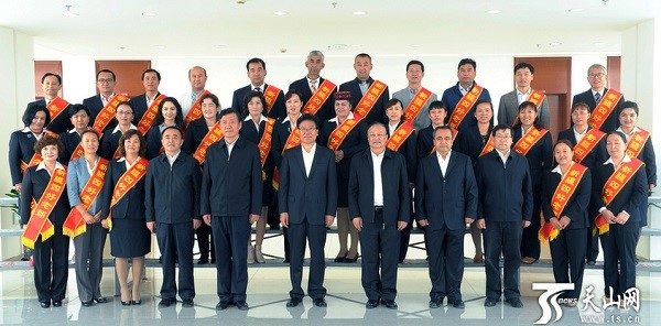 9月9日,張春賢與當(dāng)選首屆新疆特色“四好老師”的30位教師代表合影留念。新疆日報記者 盧民一 攝
