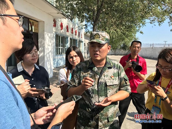 阿拉山口邊檢站監(jiān)護(hù)中隊(duì)一班副班長(zhǎng)蔣文澤告訴記者,他在邊防檢查站已經(jīng)有三年,主要負(fù)責(zé)出入境邊防檢查和交通運(yùn)輸工具的檢查。伴著一聲汽笛長(zhǎng)鳴,一輛國(guó)際班列緩緩駛來(lái)?!霸趪?guó)門前,每天看著一輛輛進(jìn)出的班列,覺(jué)得自己的付出很值得”,蔣文澤說(shuō)。