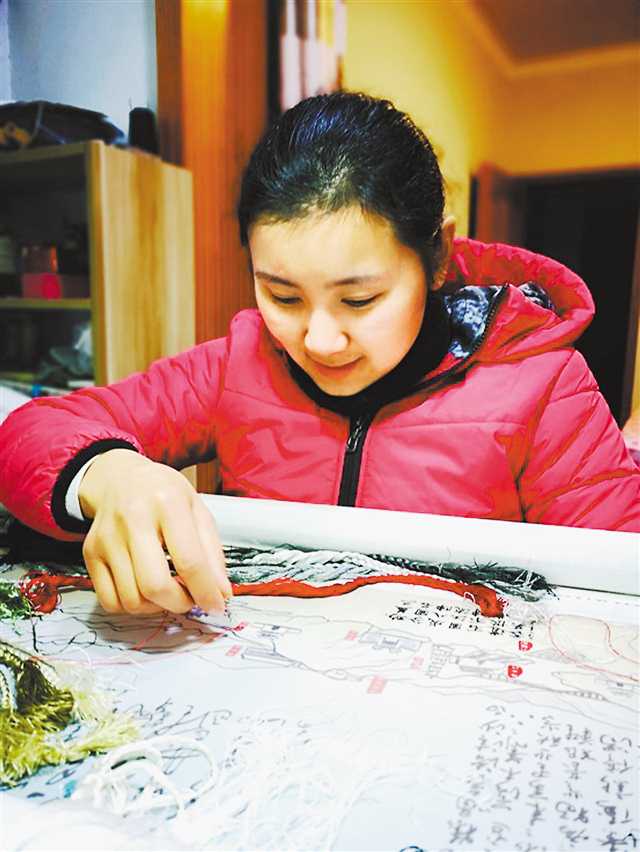 石勝蘭用亂針繡法制作夔州繡。