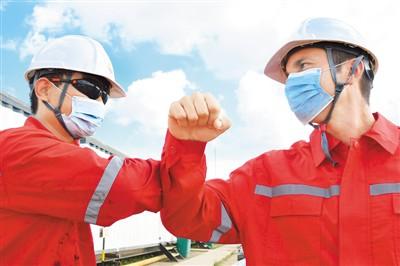 2020年11月27日,中國(guó)石油集團(tuán)長(zhǎng)城鉆探工程公司古巴項(xiàng)目GW91鉆井平臺(tái),中方員工(左)同古方員工互相致意。 華金·埃爾南德斯攝(新華社發(fā))