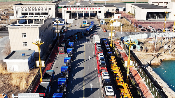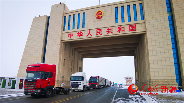 1月10日,阿拉山口口岸車輛有序通過(guò)。人民網(wǎng)記者韓婷攝