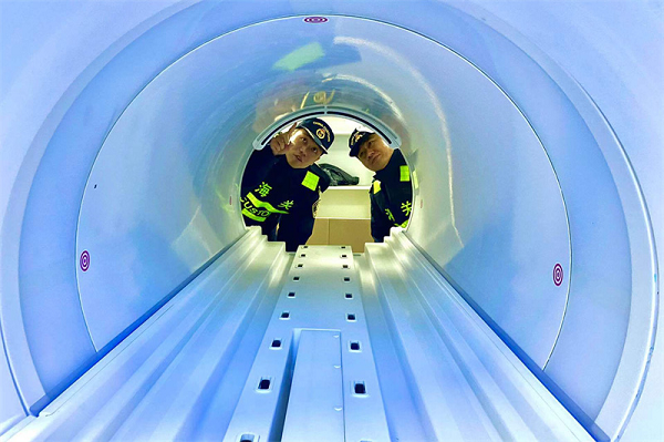 3月23日,石河子海關(guān)工作人員查驗(yàn)進(jìn)口醫(yī)療設(shè)備。謝浩攝