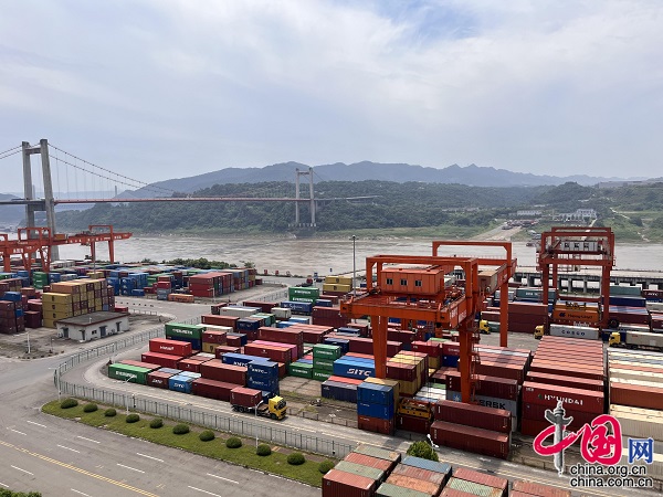 果園港位于重慶市兩江新區(qū)核心區(qū)域,是我國(guó)最大的內(nèi)河水、鐵、公聯(lián)運(yùn)樞紐港,采用的也是通常海港才有的直立式碼頭,占地超4平方公里,分為港前作業(yè)區(qū)和后港物流園區(qū)。2022年4月7日,陸海新通道長(zhǎng)江-中南半島國(guó)際多式聯(lián)運(yùn)班列在重慶果園港首發(fā),這是西部陸海新通道首次實(shí)現(xiàn)長(zhǎng)江內(nèi)河港口直達(dá)印度洋新線路。中國(guó)網(wǎng)記者 唐佳蕾/攝