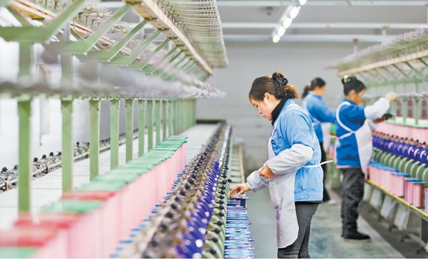 2月23日,黔江區(qū)正陽(yáng)工業(yè)園區(qū)一絲綢公司生產(chǎn)車(chē)間,工人正在絡(luò)絲。