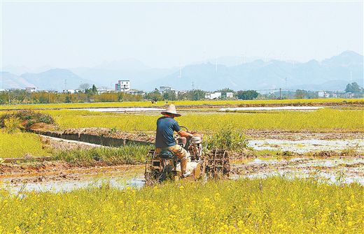 廣西引導農(nóng)民樹立耕地“用養(yǎng)結(jié)合”理念,推廣種植綠肥,提升土壤有機質(zhì)。圖為農(nóng)戶對綠肥翻壓還田。