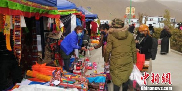 臨近藏歷新年,四季吉祥村的年貨市場(chǎng)格外熱鬧。王立林 攝