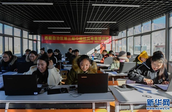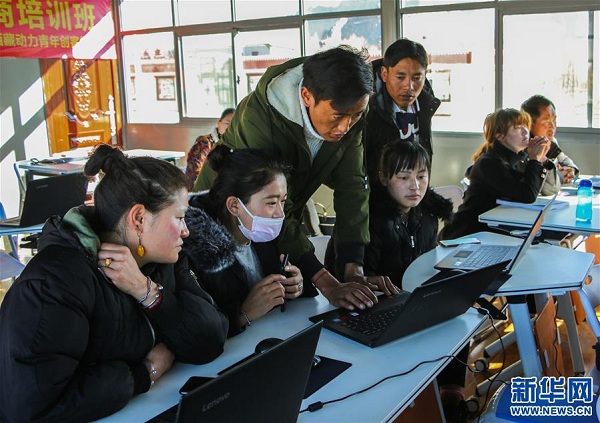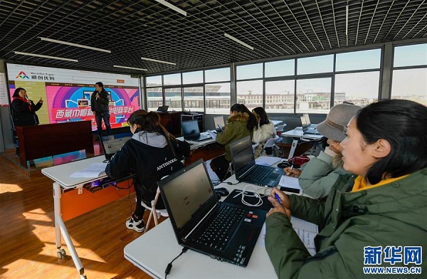 學員參加西藏自治區(qū)第三期巾幗脫貧電商培訓班(1月11日攝)。 新華社記者 劉東君 攝