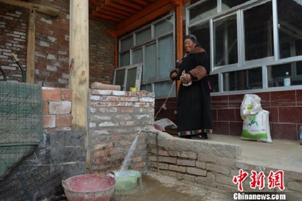 西后加村村民吃水難,全村人都從村邊一處泉眼挑水吃。2016年工作隊通過青海省水利廳協(xié)調(diào)94萬元的資金,邀請專家設(shè)計修建蓄水池,實現(xiàn)自來水戶戶通。