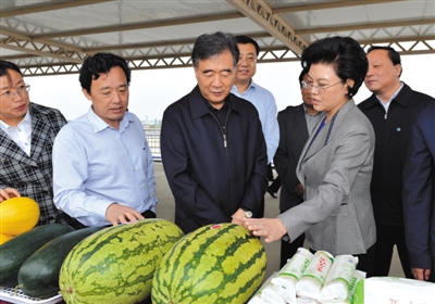 在賀蘭縣新平現(xiàn)代設(shè)施農(nóng)業(yè)示范園區(qū),汪洋詳細了解寧夏設(shè)施農(nóng)業(yè)發(fā)展情況,和科技特派員、大學(xué)生村官深入交談。得知新平村村支書是寧夏大學(xué)畢業(yè)的農(nóng)學(xué)碩士,汪洋勉勵她扎根基層,用知識帶動村民致富。
