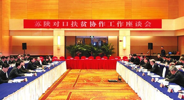 陜西日?qǐng)?bào)訊 3月21日至22日,江蘇省黨政代表團(tuán)來(lái)陜西省考察調(diào)研。21日下午,兩省在西安召開(kāi)蘇陜對(duì)口扶貧協(xié)作工作座談會(huì),圍繞深入貫徹落實(shí)習(xí)近平新時(shí)代中國(guó)特色社會(huì)主義思想和黨的十九大精神、學(xué)習(xí)貫徹全國(guó)兩會(huì)精神、深化蘇陜扶貧協(xié)作等進(jìn)行交流,并簽署了一系列合作協(xié)議。