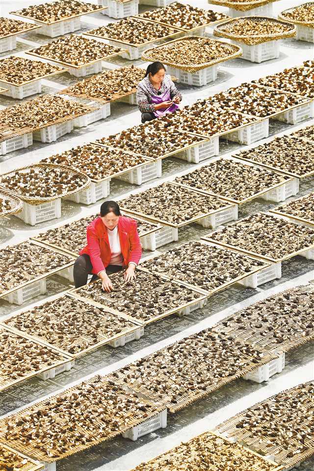 黔江區(qū)五里鄉(xiāng)羊肚菌種植基地,村民在晾曬羊肚菌。特約攝影 楊敏