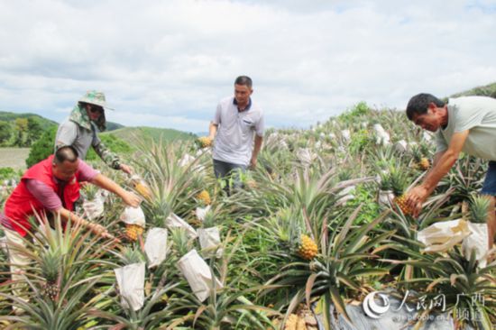 駐有生村第一書記彭宇帶領(lǐng)村民采收鳳梨。鄭雪攝
