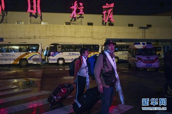 北京市第九批第二期醫(yī)療隊(duì)隊(duì)員走出拉薩機(jī)場(7月31日)。新華社記者 彭子洋 攝