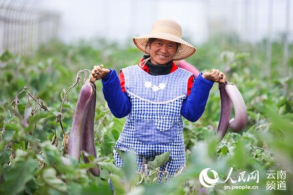 走進(jìn)兔場村的蔬菜基地,20多個(gè)大棚整齊排列,大棚里的茄子、辣椒、蓮花白、苦菜長勢喜人,村民們忙著采摘、分揀、裝箱。次日一早,這些新鮮蔬菜就能上到200多公里外的昆明理工大學(xué)食堂餐桌。