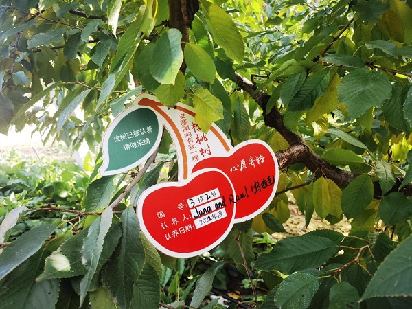 延安市安塞區(qū)高橋鎮(zhèn)南溝村的櫻桃園里,被國外消費者認養(yǎng)的櫻桃樹。受訪者供圖