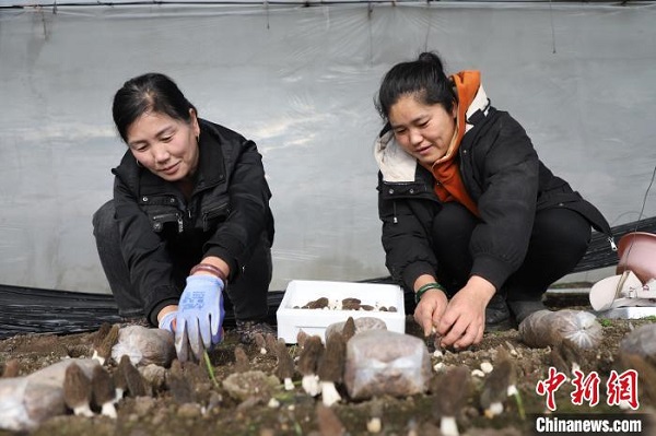 “我常年在基地里務(wù)工,幫助維護(hù)種植大棚、采收羊肚菌,收獲羊肚菌之后,還能去瓜棚幫忙,一年到頭手里都有活兒干?!贝迕裰x中山一邊低頭采收羊肚菌,一邊和記者搭話,“每個(gè)月工資能拿到3000元,很好啦?!?/p>