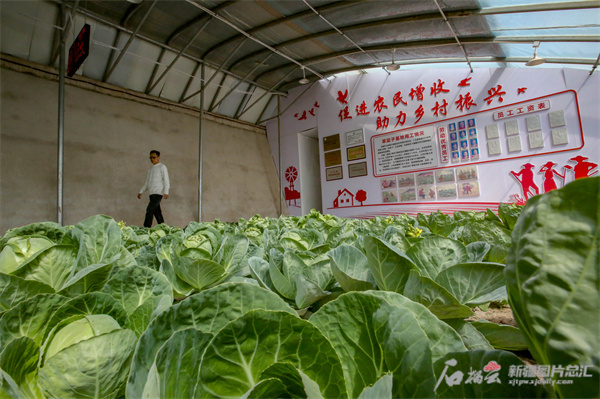 3月30日,工作人員在疏附縣現(xiàn)代農(nóng)業(yè)產(chǎn)業(yè)園粵港澳大灣區(qū)“菜籃子”生產(chǎn)基地溫室大棚里查看蔬菜生長情況。