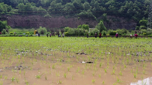 稻田畦畔,不同顏色的秧苗在風(fēng)中搖曳,工人們按照提前放好的線形,將不同顏色的秧苗插在水里,構(gòu)成了一幅精美的“稻田畫”。今年以來,潮塔村立足川道實(shí)際、資源優(yōu)勢,打造形成“1+2+N”的多元產(chǎn)業(yè)發(fā)展致富新模式賦予文旅觀賞、游玩、宿營等元素,著力探索“工農(nóng)商旅”文旅融合發(fā)展新路子?!敖衲晔状螄L試‘稻田畫’,在增加觀賞性和趣味性的同時(shí),不斷提升大米品牌知名度,實(shí)現(xiàn)農(nóng)旅融合?!甭閳@林說。