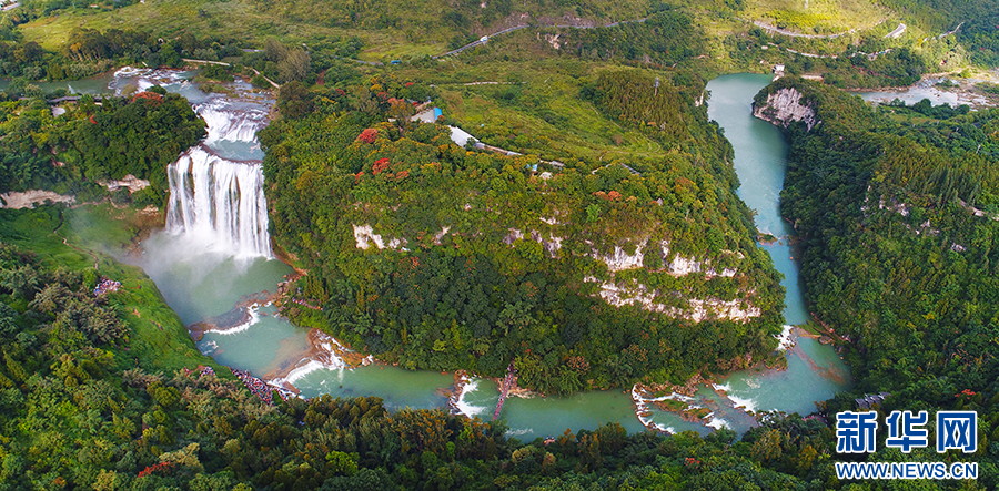 航拍貴州安順黃果樹瀑布及其下游白水河。新華網(wǎng) 盧志佳 攝