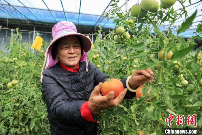 11月5日,村民在四川省甘孜州爐霍縣高原小番茄種植基地采摘番茄。中新社記者 王磊 攝