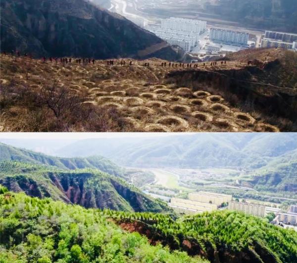 漸漸地,樹越種越多,人們種出了經(jīng)驗,種出了熱情,種出了奇跡。縱橫的溝峁長出了林子,光禿禿的山梁披上了綠裝。