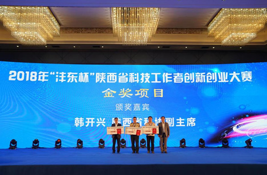 2018年“灃東杯”陜西省科技工作者創(chuàng)新創(chuàng)業(yè)大賽閉幕式金獎項目頒獎現(xiàn)場 供圖 陜西省科學(xué)技術(shù)協(xié)會