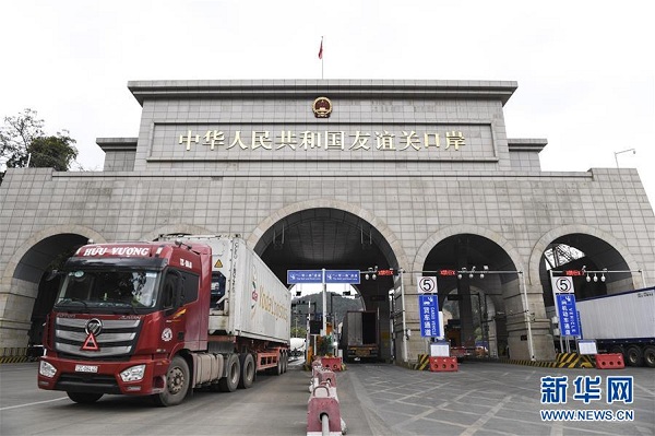 越南貨車通過廣西憑祥市友誼關口岸(1月3日攝)。 新華社記者 曹祎銘 攝
