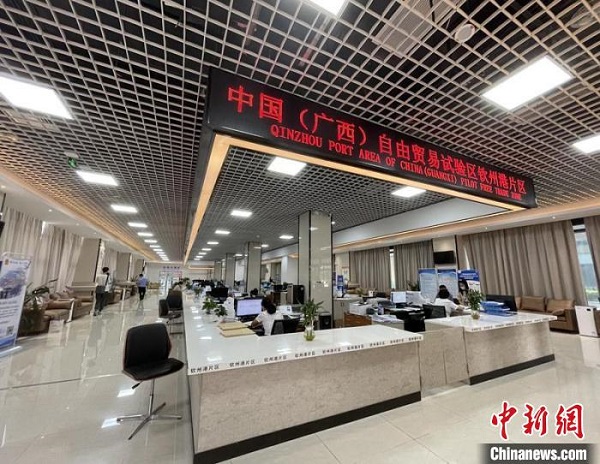 圖為中國(廣西)自由貿(mào)易試驗區(qū)欽州港片區(qū)綜合服務(wù)大廳。廣西商務(wù)廳供圖