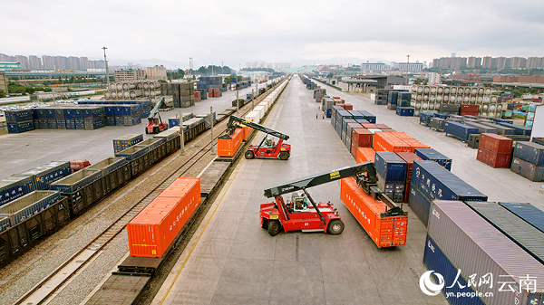 這兩天,位于中國(guó)(云南)自由貿(mào)易試驗(yàn)區(qū)昆明片區(qū)王家營(yíng)的中鐵聯(lián)集昆明中心站內(nèi),運(yùn)輸叉車來(lái)回穿梭,貨物整裝待發(fā)。