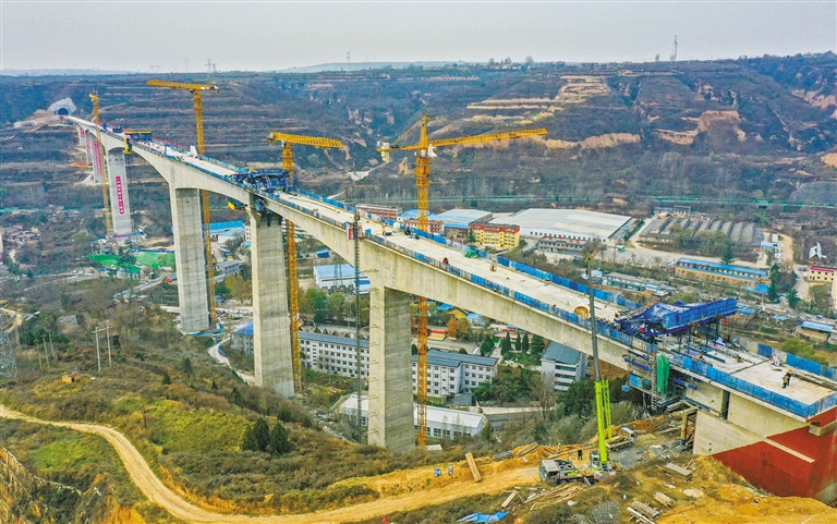 ▲11月15日,西延高鐵全線重難點(diǎn)控制性工程——王家河特大橋主橋成功合龍(資料照片)。