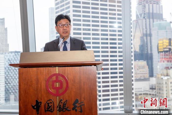 當(dāng)?shù)貢r間4月10日,以“經(jīng)濟合作與文化傳承的雅致之約”為主題的“甘肅雅集”推介活動在美國紐約曼哈頓舉行。圖為甘肅省委常委、副省長張錦剛致辭。 中新社記者 廖攀 攝