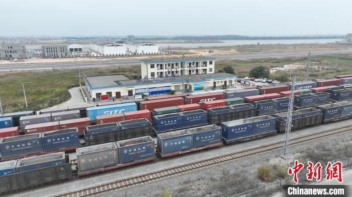 圖為多趟編組好的鐵海聯(lián)運(yùn)集裝箱貨物班列整齊地??吭跉J州港東站站場股道上,展現(xiàn)一派繁忙的景象。陳磊攝