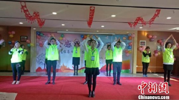 圖為志愿者為在場(chǎng)殘疾人及其家人表演《感恩的心》。 張海雯 攝