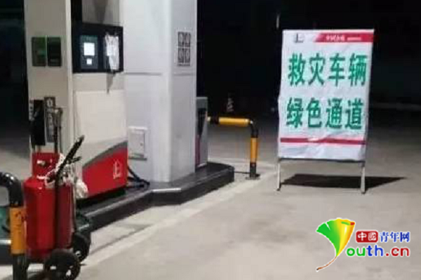 加油站為救災(zāi)車輛開通綠色通道。網(wǎng)絡(luò)圖。
