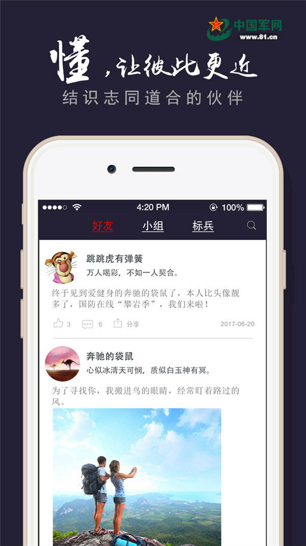著眼于面向社會(huì)、面向未來、服務(wù)國防,“國防在線”客戶端重點(diǎn)發(fā)布全國軍訓(xùn)工作權(quán)威信息,報(bào)道全國大中院校軍訓(xùn)鮮活動(dòng)態(tài);邀請全軍軍事院校知名專家學(xué)者、部隊(duì)優(yōu)秀教官、訓(xùn)練尖兵和特戰(zhàn)隊(duì)員進(jìn)行視頻教學(xué)示范;軍訓(xùn)學(xué)生可以采取用戶創(chuàng)造資源模式,上傳曬出自己的訓(xùn)練成果,分享自己的訓(xùn)練心得,關(guān)注好友的訓(xùn)練動(dòng)態(tài),并通過客戶端的社交平臺(tái)開展學(xué)習(xí)交流,從而依托自主、系統(tǒng)、科學(xué)、規(guī)范、標(biāo)準(zhǔn)的在線軍訓(xùn)平臺(tái),引導(dǎo)大中學(xué)生實(shí)施自主軍訓(xùn),為國防動(dòng)員和國防教育開辟和構(gòu)建了廣大青年喜聞樂見的“線上課堂”。