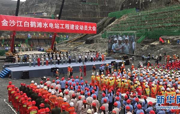 8月3日,金沙江白鶴灘水電站全面開工儀式在大壩基坑底部舉行。當日,全球在建裝機規(guī)模最大水電站白鶴灘水電站進入主體工程全面建設(shè)階段。白鶴灘水電站位于四川省寧南縣和云南省巧家縣境內(nèi)的金沙江干流下游河段上,總裝機規(guī)模達1600萬千瓦,是僅次于三峽工程的世界第二大水電站。該工程由中國三峽集團承建,是國家能源戰(zhàn)略布局“西電東送”的骨干電源點。新華社發(fā)