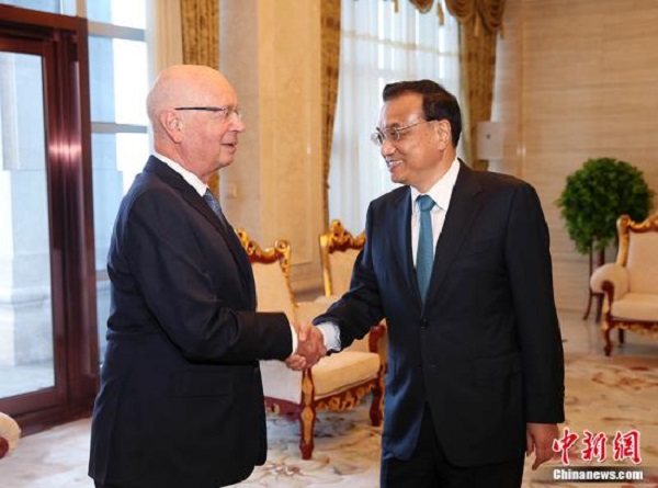 6月26日下午,中國國務(wù)院總理李克強(qiáng)在大連國賓館會(huì)見來華出席2017年夏季達(dá)沃斯論壇的世界經(jīng)濟(jì)論壇主席施瓦布等與會(huì)嘉賓代表。 中新社記者 劉震 攝
