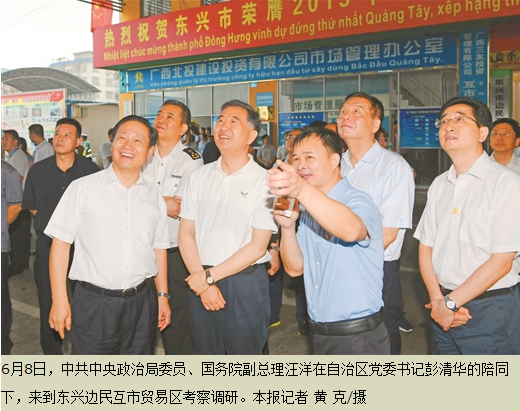 汪洋深入東興市北侖河中越邊境一線調(diào)研,詳細(xì)了解反走私綜合治理進(jìn)展,實(shí)地考察邊民互市貿(mào)易和跨境經(jīng)濟(jì)合作區(qū)建設(shè)情況,并在南寧主持召開全國(guó)重點(diǎn)地區(qū)打擊走私工作座談會(huì)。