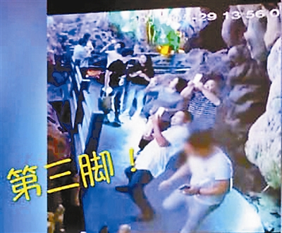 據(jù)現(xiàn)場監(jiān)控視頻上的信息顯示,5月29日下午1點(diǎn)56分左右,一名身著白色短袖上衣的男子在貴州松桃苗族自治縣潛龍洞景區(qū)內(nèi),看到了步道邊的一根半米左右的鐘乳石。他旁邊有幾個(gè)人在拍照,男子則試著踢了一腳這根鐘乳石,發(fā)現(xiàn)沒有變化,之后又補(bǔ)了一腳,明顯比第一腳更用力,鐘乳石依舊沒動,直到第三腳下去,鐘乳石終于被踢斷,踢斷的部分有30厘米左右。