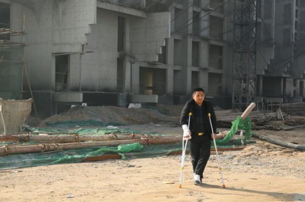 河北定州勝利街建華社區(qū)的一個工棚內,重慶涪陵籍農民工趙家友拄著拐杖目光沉重地望著窗外被霧霾籠罩的天空。因為合伙承包的定州市東明家具城商業(yè)樓項目885.9萬元工程款被拖欠,去年10月22日他帶工人討要工程尾款時遭追打,趙家友的腿被開發(fā)商定州市豐源房地產開發(fā)有限公司(以下簡稱:豐源房地產公司)工作人員打骨折。