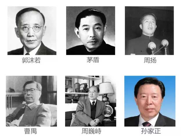 歷屆主席:郭沫若、茅盾(名譽(yù)主席)、周揚(yáng)、曹禺、周巍峙、孫家正