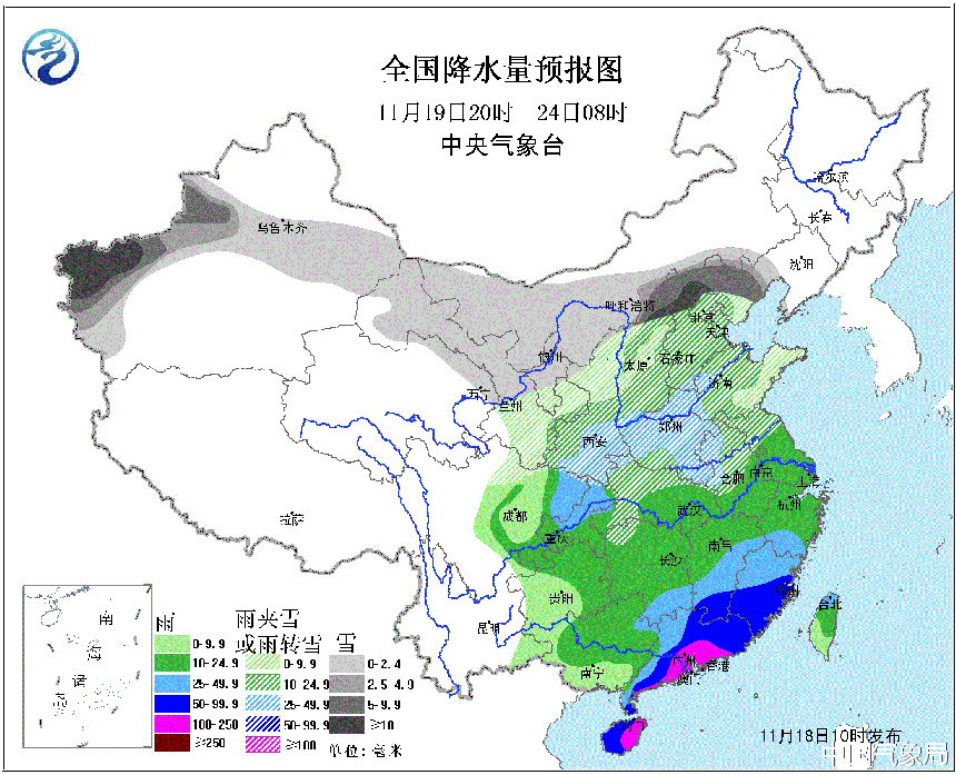 北方地區(qū)將有明顯降雪或雨轉(zhuǎn)雪,南方地區(qū)將有強(qiáng)降雨。20日白天至23日白天,內(nèi)蒙古中南部、西北地區(qū)東部、華北、黃淮、江淮及江漢北部等地自北向南將先后出現(xiàn)雨轉(zhuǎn)雪(雨夾雪)天氣,大部地區(qū)過(guò)程降水量有10~30毫米,降雪量普遍有4~9毫米,其中北京西部和北部、河北北部和西部、河南中西部、陜西關(guān)中及南部、湖北西北部等地降雪量可達(dá)10~15毫米,局地可達(dá)20毫米。另外,四川盆地東部、福建、廣東中東部和海南等地有20~60毫米的降雨,廣東南部和海南東部部分地區(qū)累計(jì)雨量可達(dá)100毫米。