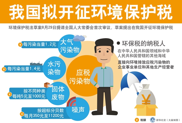 環(huán)境保護稅法草案29日提請全國人大常委會首次審議,草案提出在我國開征環(huán)境保護稅。