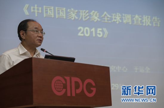 8月29日,中國外文局副局長王剛毅在《中國國家形象全球調(diào)查報告2015》發(fā)布會上講話。新華網(wǎng) 王蕙林 攝